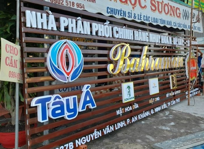 - Màu sắc và kiểu chữ cần hài hòa với tổng thể thiết kế của cửa hàng, doanh nghiệp.