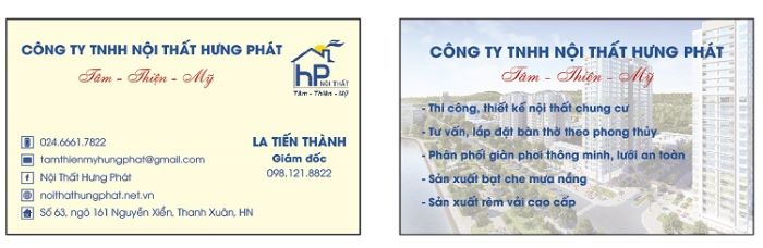 Card visit thường chứa các thông tin như tên doanh nghiệp, địa chỉ, số điện thoại, website,… cùng với đó là các thông tin về dịch vụ, sản phẩm nột thất mà doanh nghiệp cung cấp. Mục đích của card visit là giới thiệu và quảng bá các thông tin về sản phẩm, dịch vụ nội thất đến với khách hàng nhằm tiếp cận và tăng khả năng sử dụng dịch vụ của doanh nghiệp.